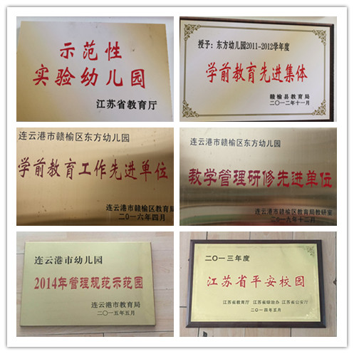 建园以来,我园认真贯彻《幼儿园管理条例》、《幼儿园工作规程》、《幼儿园教育指导纲要》、《3—6岁儿童学习与发展指南》等文件精神,以“一切为了孩子发展”为办园宗旨,以“阳光、自信、健康、快乐”为办园目标,倡导“回归生活,智慧发展”的办园理念,大胆创新、不断改革,努力探索新的幼儿活动课程体系,让在园的每一位孩子都能得到全面健康的发展。建园近20年以来,先后获得了“江苏省优质幼儿园”、“江苏省平安校园”、“连云港市管理规范示范园”、“连云港市餐饮食品卫生A级单位”、“赣榆区学前教育先进集体”和“赣榆区研修先进单位”等荣誉称号。在幼儿园的发展过程中,不断优化师资队伍建设、努力提高园所保教水平,是提升我园办园质量的有效渠道之一。我园教师团队协作团结、爱岗敬业,是一支具有旺盛生命力的团队。其中教师本科学历21人,占全体专任教师的75%。在园长的带领下,教师们爱学习、善思考,在历年来的培训、学习观摩中,认真聆听了多位著名专家和教授的教育理论,吸取了宝贵的经验,并能把先进的教育理念运用到教学实践中,提高了教师的业务能力。全园教师积极向上、刻苦钻研,其中,荣获“连云港市先进教育工作者”称号4人次,省级幼儿绘画辅导奖80人次,区幼儿教师基本功大赛获一等奖10人次,区优质课评比活动中获奖12人次;区幼儿故事大赛获奖3人次,区幼儿教师弹唱比赛获奖3人次,教师撰写的论文、教案、教育随笔多次在省、市、区评选活动中获奖。在各级领导的关心支持下,在全园教职工的共同努力下,幼儿园获得了社会各界及幼儿、家长的一致好评。