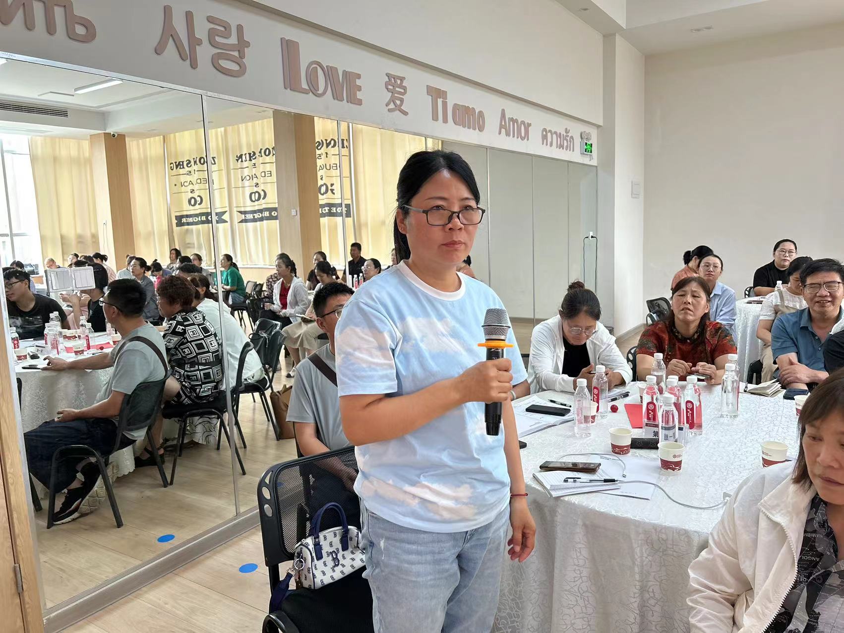 连云区景城名郡幼儿园园长董兰代表第四组上台作了组内幼儿园介绍及园所面临的困惑发言。