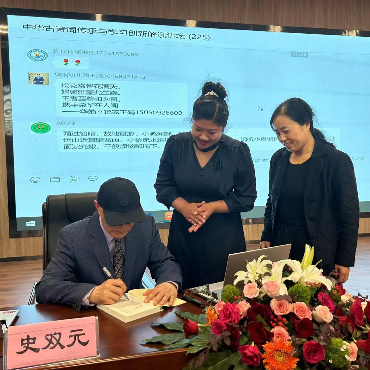史博士的讲座,以“中国古典诗词的深度阅读与创新解读”为题,从唐诗、宋词的创作社会背景谈起,以其独特的视角,从思想、感情层面回到诗人的创作现场,从诗人的生命轨迹探究其真实的经历、情绪和创作意图,还原字里行间的生命感悟和文化底蕴。通过对古诗词的诗意还原,让与会者能掌握这些诗歌名篇的精髓,不仅达到以美育人,并能与历史上的知名诗人进行跨时空的心灵交流!活动内容充实,与会者受益匪浅,现场掌声不断,高潮迭起,气氛热烈。