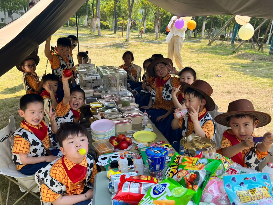 露营美食环节更是让孩子们欢呼雀跃,5月31日幼儿园准备了丰富多样的美食,孩子们拥抱大自然尽情品尝,享受着舌尖上的快乐。