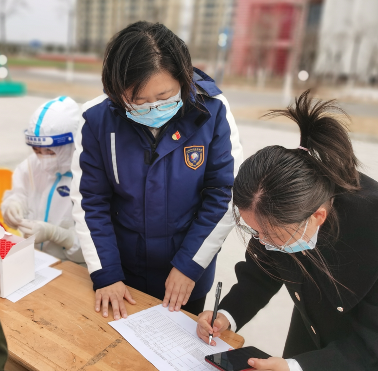 疫情发生时,学校在校师生近2000名,第一次连夜进行大规模的核酸检测全员采集,根本没有什么经验,她一边配合区里布置全员核酸采样点,反复检查医用物资摆放工作是否到位,一边不停地维持秩序,不停地接打电话协调各部门,最终在短短5个小时内,配合医务人员完成了校内2000余人的核酸检测,顺利地完成了第一次的采样任务。为了怕有漏检人员,和后勤人员晚上9点之后将学校6层寝室楼,每一层每一户进行敲门检查,一层层一户户问下来,已经到了深夜12点多。结束后,又步履蹒跚地回到核酸检测点,仔仔细细地清理检测场地,整个疫情期间,她边做边摸索边积累经验,累计有序高效组织师生职工及家属核酸检测10000余人次。