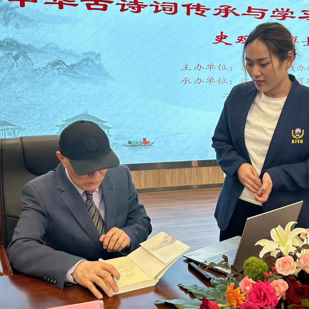 史博士的讲座,以“中国古典诗词的深度阅读与创新解读”为题,从唐诗、宋词的创作社会背景谈起,以其独特的视角,从思想、感情层面回到诗人的创作现场,从诗人的生命轨迹探究其真实的经历、情绪和创作意图,还原字里行间的生命感悟和文化底蕴。通过对古诗词的诗意还原,让与会者能掌握这些诗歌名篇的精髓,不仅达到以美育人,并能与历史上的知名诗人进行跨时空的心灵交流!活动内容充实,与会者受益匪浅,现场掌声不断,高潮迭起,气氛热烈。