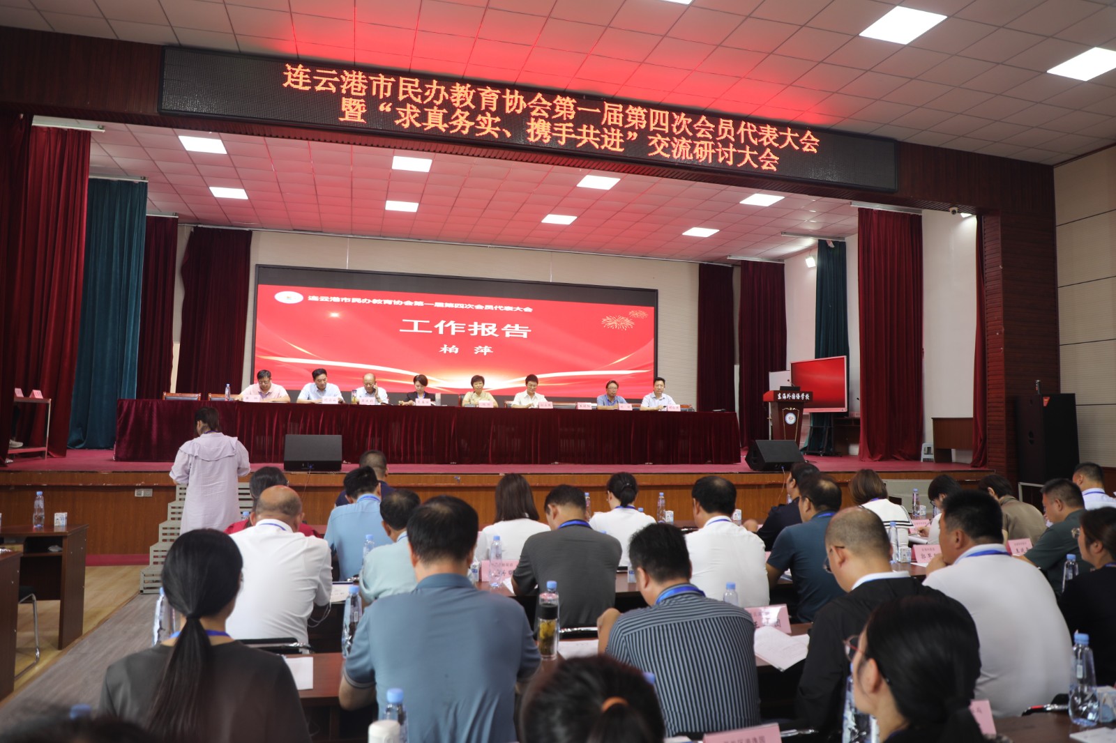 8月21日,连云港市民办教育协会第一届第四次会员代表大会暨“求真务实 携手共进”交流研讨大会在东海外国语学校隆重召开,来自全市各个县区会员代表共计240余人出席了大会。市教育局副局长张团思、社会教育与行政服务处处长朱家贤,东海县委教育工委委员李艳,东海县教育局职社科科长王思姣出席了大会开幕式。会议时间一天,内容满满、充实,圆满完成了第一届第四次会员代表大会和“求真务实、携手共进”交流研讨大会相关议程,达到了预期的效果。